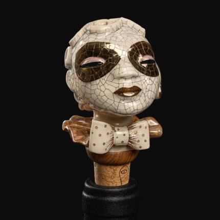 Bring a touch of mystery and elegance to your wine ritual with the Golden Masquerade ceramic cork. Handcrafted with a golden mask and detailed crackle finish, this unique stopper blends Italian artistry with functional charm. Each piece arrives in a beautiful gift box with a wooden stand — ready to impress or gift.