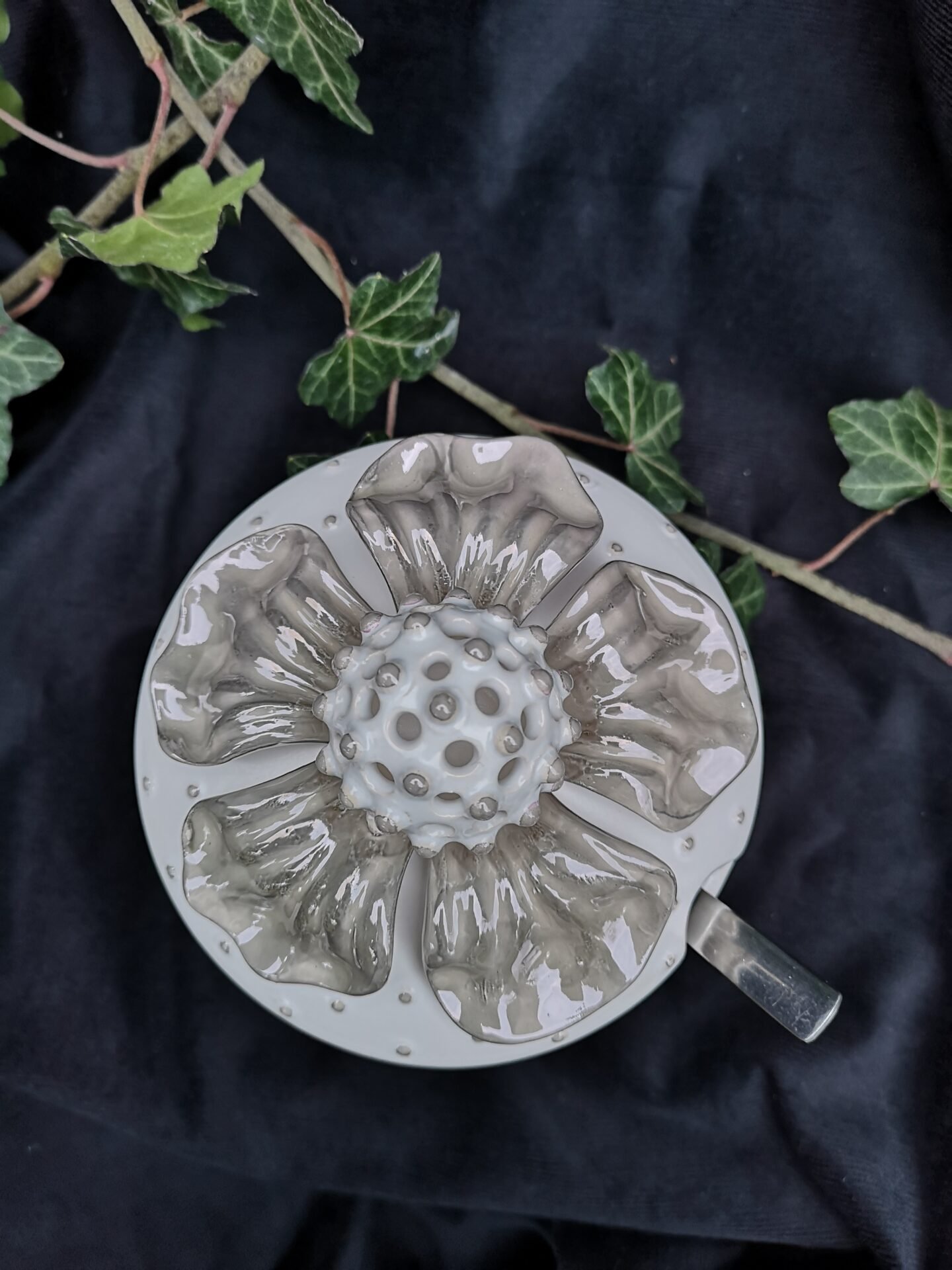 Blooming Sweetness – Ceramic Sugar container – White and grey color