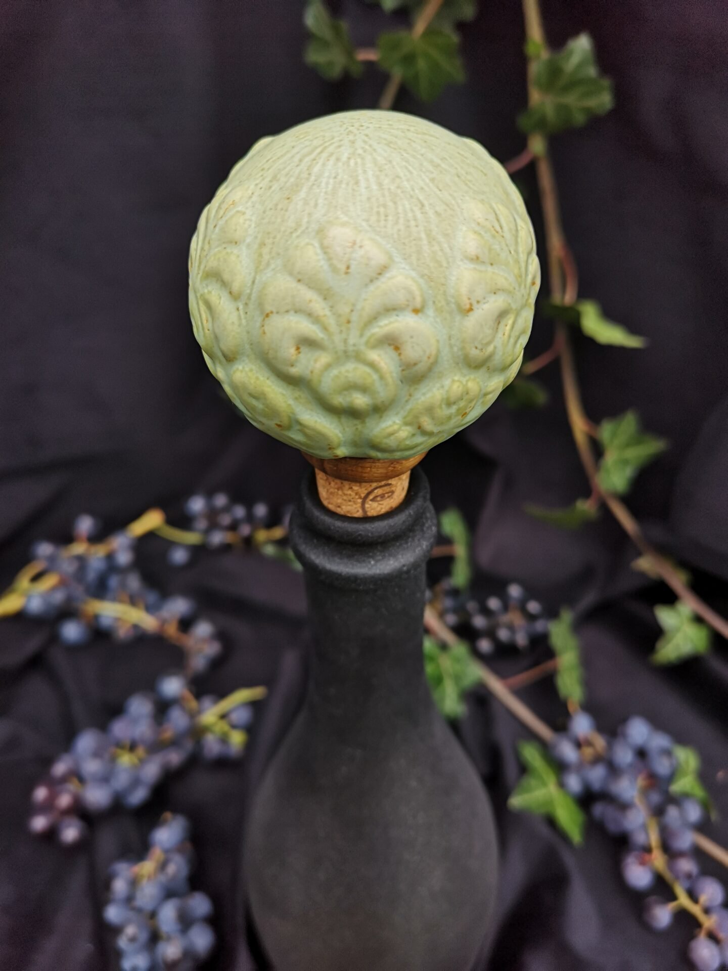 Round Elegance Wine Cork – Matte sage green color
