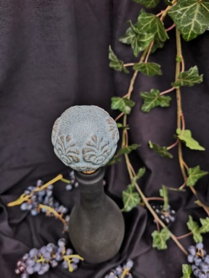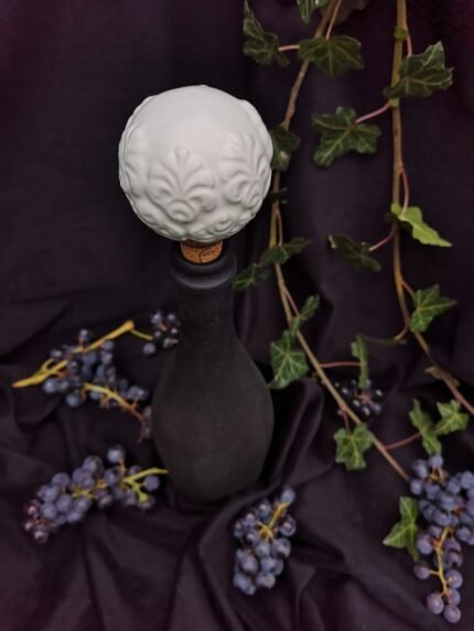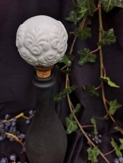 This handcrafted ceramic stopper features a delicately embossed pattern that evokes the grace of classical design. Its soft green tones and smooth finish bring a sense of warmth and refinement, turning a simple wine bottle into a decorative statement piece.