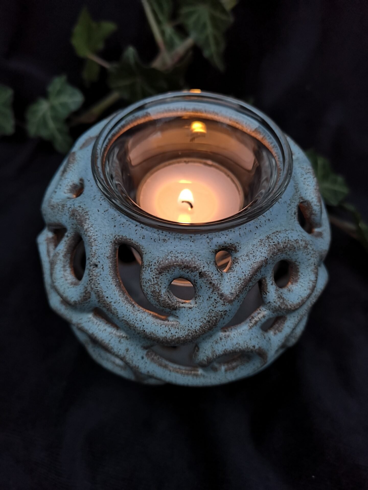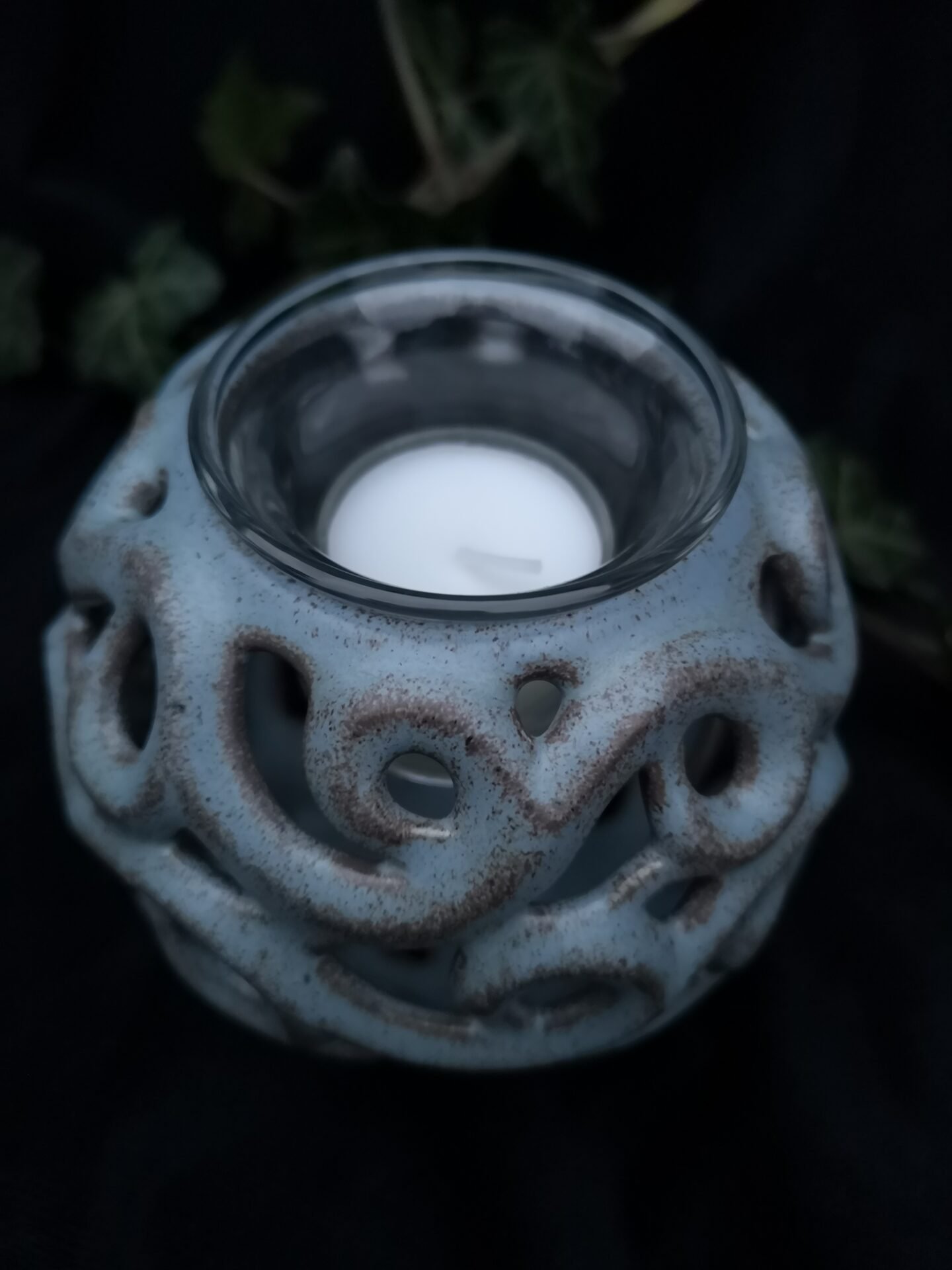 Serenity Glow: The Elegant Round Candle Holder – Greyish blue matte color